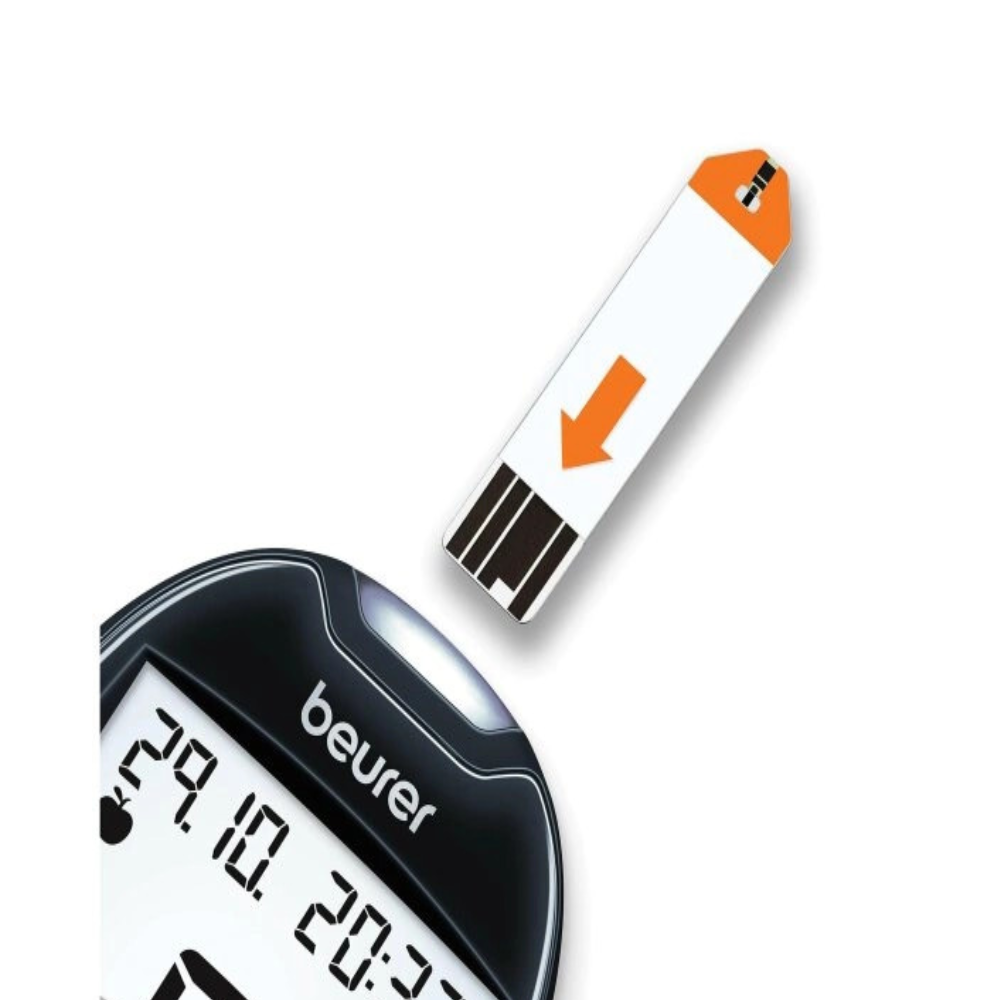 Das hinterleuchtete Display sorgt für die gute Lesbarkeit Ihrer Blutzucker-Werte und der beleuchtete Streifen-Einfuhrschacht für die komfortable und einfache Messung. Extra breite Teststreifen für das leichte Einführen der codefreien Streifen in das Gerät.